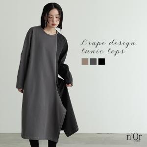 チュニックワンピース 長袖 レディース ワンピース スウェット トップス チュニック丈 アシンメトリー 異素材 配色 秋 冬 春「メール便不可」「20」