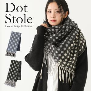 ストール レディース アクセサリー ファッション雑貨 小物 マフラー ショール ドット柄 配色 バイカラー 秋 冬 オシャレウォーカー「メール便不可」「20」