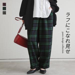 パンツ レディース ボトムス ロング丈 サーカスパンツ ワイドパンツ チェック タック ライトメルトン 秋 冬 オシャレウォーカー「メール便不可」「30」