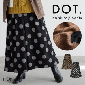 ワイドパンツ レディース ボトムス ロング丈 ガウチョ ドット柄 水玉柄 コーデュロイ 裏地付き ポケット ウエストゴム 40代 50代 秋 冬「メール便不可」「20」