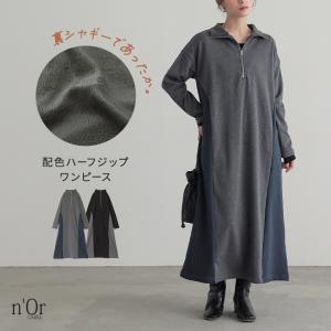 ワンピース ロングワンピース レディース 40代 50代 ロング 裏起毛 長袖 ゆったり 体形カバー 楽ちん あったか ハーフジップ 返品交換不可「メール便不可「40」