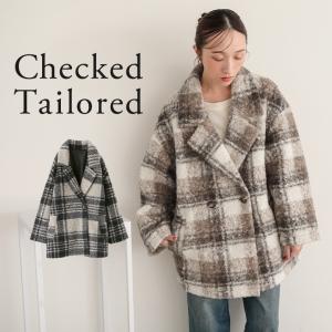 コート レディース アウター ジャケット テーラード ミドル丈 チェック柄 ループボア 羽織り 秋 冬 オシャレウォーカー「メール便不可」「50」