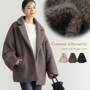 コート レディース アウター ジャケット テーラード ミドル丈 リングフェイクウール コクーンシルエット 羽織 秋 冬 オシャレウォーカー「メール便不可」「60」
