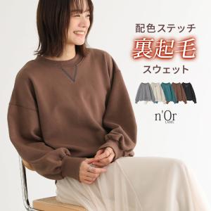 スウェット 長袖 レディース トップス トレーナー 裏起毛 あったか クルーネック 配色 「メール便不可」「30」