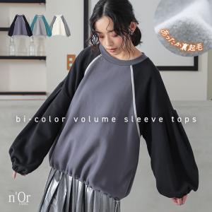 スウェット 長袖 レディース トップス トレーナー ラグラン 配色 無地 ドロスト 裏起毛 ボリューム袖 「メール便不可」「30」