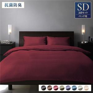 ベッドカバー 3点組 〔セミダブル ワインレッド〕 掛け布団カバー ボックスシーツ 枕カバー 抗菌防臭 洗える 〔寝室〕