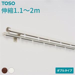 伸縮 カーテンレール 〔ダブル 2mセット 木目ホワイト〕 静音ランナー 持ち上げ式ブラケット 木目調 リネア