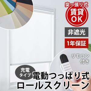 電動ロールスクリーン つっぱり式 ロールカーテン 遮光 コードレス 充電式 UVカット オーダーメイド / 電動 突っ張り式 1級遮光
