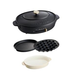 イデアインターナショナル BRUNO ブルーノ オーバルホットプレート 本体 プレート3種 (たこ焼き 深鍋 平面) crassy+ BOE053-BK ブラック