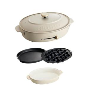 BRUNO ブルーノ オーバルホットプレート 本体 プレート3種 (たこ焼き 深鍋 平面) グレージュ Greige