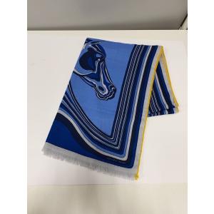 HERMES◆ストール/カシミア/BLU/総柄/レディース/ペガサスの風景/2021