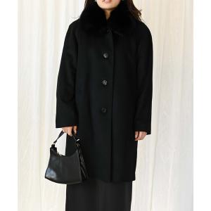 ステンカラーコート コート カシミアウールコート(90cm丈)(ブルーフォックスファー付き/取り外し可能) レディース