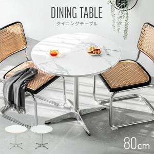 カフェテーブル ダイニングテーブル 石目長 丸テーブル コーヒーテーブル 白 一人暮らし ダイニング 2人用 大理石調