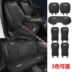 ジープ JEEP 刺繍ロゴ入り 車用 汎用 座布団 シートカバーセット シートクッション 滑り止め シートカバー 座席の背もたれ 高級通気性素材 四季汎用