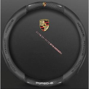 新品 ポルシェ PORSCHE 滑り止め素材 ハンドルカバー カーボン調&ナッパ革 汎用 ステアリングカバー