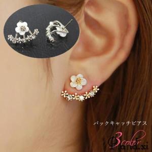 バックキャッチピアス スタッドピアス レディース 女性 アクセサリー ファッション雑貨 花 フラワー シルバーカラー ゴールドカラー かわいい キュー