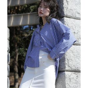 ブラウス シャツ メタル釦シャツ_ストライプ レディース