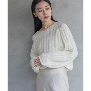 ニット ケーブル編み フィッシュテール ローゲージ レディース プルオーバー レッド 赤 アイボリー 白 ブルー 青 長袖 セーター