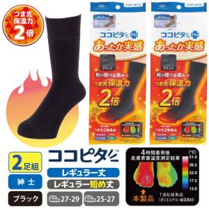 ココピタ あったか実感 2足組 メンズ レギュラー丈 クルー丈 つま先 保温力2倍 靴下のオカモト ビジネスソックス ココピタプラス 通勤 通学 冷え性の方に 25-27