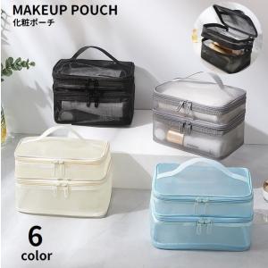 化粧ポーチ バニティポーチ 2段 大容量 メッシュ 取っ手付き 持ち運び メイクポーチ コスメポーチ メイクボックス コスメボックス 収納 メイク道具