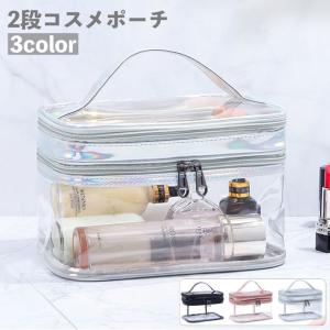 化粧ポーチ コスメポーチ 2層 2段 透明 スケルトン 防水 バニティポーチ バニティバッグ ファスナー 取っ手付き 大容量 収納 整理 メイク用品