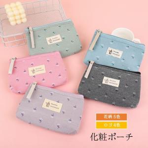 化粧ポーチ メイクポーチ コスメポーチ ミニポーチ 小物入れ キャンバス 防水 コンパクト 携帯用 花柄 ロゴ かわいい