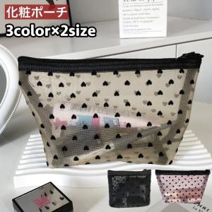 化粧ポーチ コスメポーチ メイクポーチ レディース 女性 小物入れ 化粧品収納 メッシュ コンパクト ミニ 軽量 ファスナー ハート かわいい おしゃ
