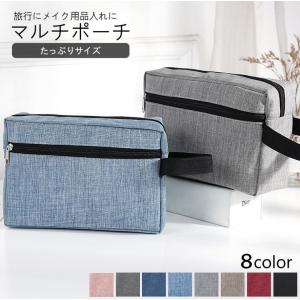 マルチポーチ 化粧ポーチ トラベルポーチ コスメポーチ 女性 男性 ユニセックス メイク用品入れ 四角 スクエア 無地 シンプル ポケット 大きめ 旅