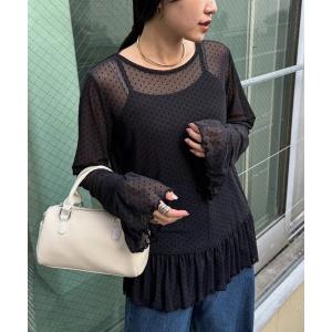 tシャツ 「レイヤードにおすすめ」フロッキードットチュールフリルトップス レディース