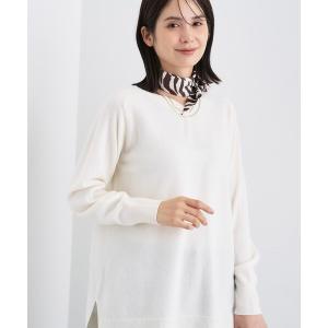 ニット セーター 「洗える/チュニック丈/カシミヤ混」スリットデザインVネックニット レディース