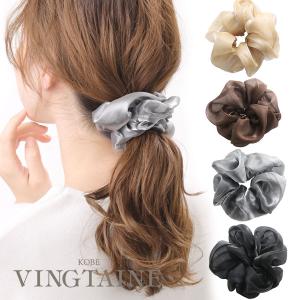 シュシュ シャイニー オーガンジー 無地 シアー 透け感 ボリューム シンプル まとめ髪 HS-169