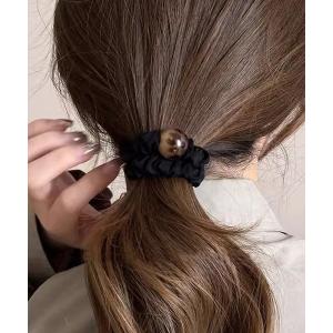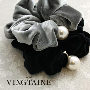 シュシュ ベロア 一粒パール付き シンプル 上品 ヘアアクセサリー カジュアル HS-176