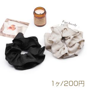 シュシュ 大きめフリル ドット模様 存在感◎ エレガント ブラック ホワイト 髪留め ヘアアクセサリー(1ヶ)