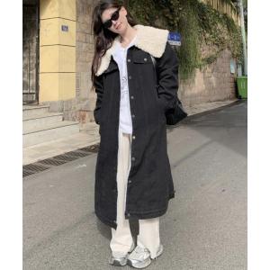 デニムジャケット gジャン シープスキンカラー大襟 ロングデニムコート フリース内張りデニムアウター レディース
