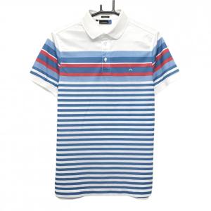 【美品】ジェイリンドバーグ 半袖ポロシャツ 白×ブルー ボーダー メンズ XS ゴルフウェア J.LINDEBERG
