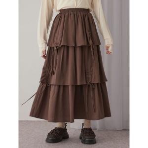 スカート リボンドロストティアードスカート