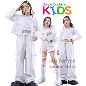 白 スパンコール ジャケット ガールズ ダンス 衣装 ジャズ キッズ 女の子 衣装 ホワイト シャツ へそ出し ロングパンツ 短パン ヒップホップ モノトーン 韓国