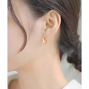 3連パール×メタルラインフープピアス[ジャルビジュー]