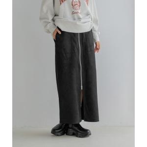 スカート SHIPS any: ポリエステル スエード フロント ボタン Aライン スカート