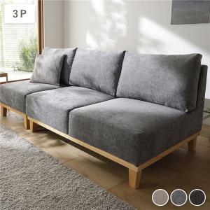 【ポイント5倍!】アームレス ソファ 3人掛け ソファー 単品 グレー 洗える カバー付 天然木 ローソファ ポケットコイル