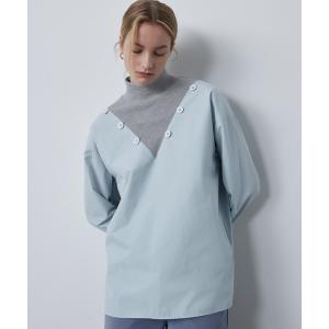 ブラウス シャツ 「ELOOPS」アクセントボタンバイカラーニットブラウス レディース