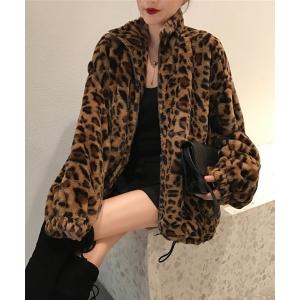 ブルゾン アウター ヒョウ柄ボアジャケット レディース