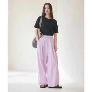 スラックス パンツ 上品なデザインと履き心地。タック使いワイドシルエットハイウエストスラックス レディース