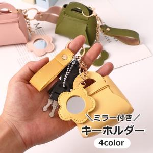 キーホルダー キーリング バッグチャーム ミラー付き 鏡 小物入れ レザー調 鍵 カギ フラワー お花 シンプル おしゃれ かわいい