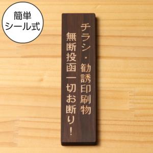 チラシ 勧誘印刷物 無断投函 一切お断りします 木製サインプレート 縦型 ダークブラウン 茶 ポスト 縦書き 多少の水濡れOK 日本製 シール式 メール便送料無料