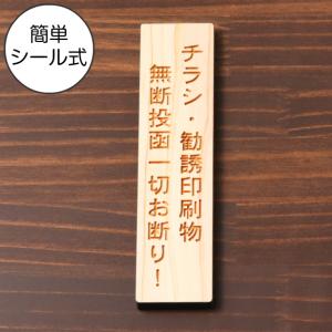 チラシ 勧誘印刷物 無断投函 一切お断りします 木製サインプレート 縦型 ナチュラル ポスト 縦書き 多少の水濡れOK ひのき 日本製 シール式 メール便送料無料