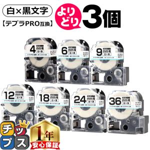 テプラテープ 白 4mm 6mm 9mm 12mm 18mm 24mm 36mm テプラPRO用互換 選べる3個 キングジム対応 白/黒文字 サイズ自由選択 3個 互換テープ 強粘着