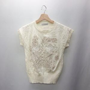 ◇ ⊇ ◎●未使用● DHOLIC ディーホリック 刺繍 袖なし ニットカットソー サイズF オフホワイト レディース E