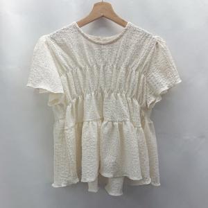 ◇ ⊂ ◎ ●未使用● DHOLIC ディーホリック フリルデザイン 半袖 ブラウス サイズF アイボリー レディース E