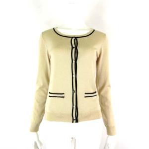 トップバリュ TOPVALU カーディガン ニット バイカラー ラウンドネック ストレッチ 長袖 M ベージュ 黒 ブラック ゴールド 美品 レディース